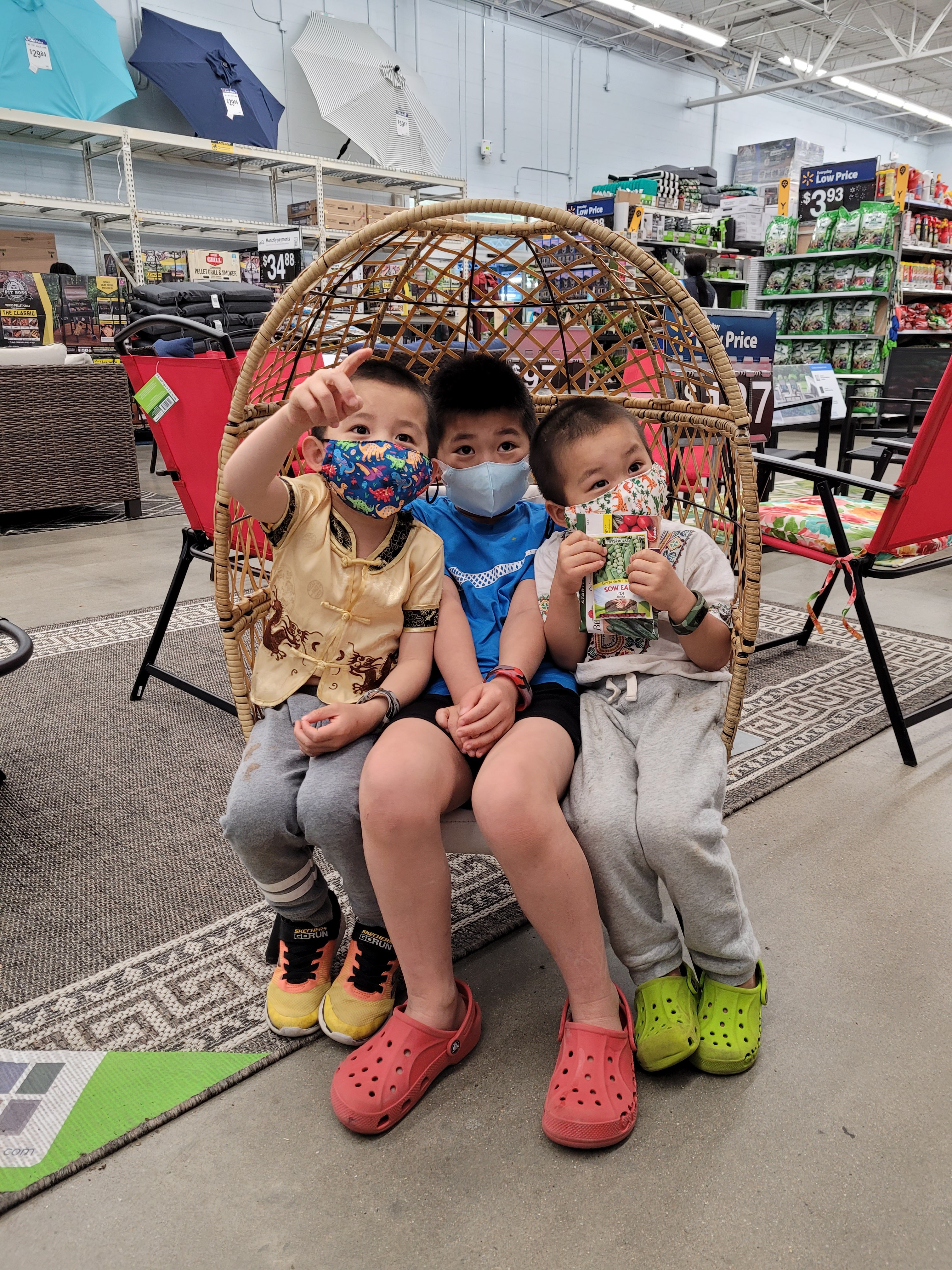 We went to museum. Then Costco, got hotdogs, drinks and ice cream for dinner. Then Walmart for garden supplies. Lastly Michael’s for crochet supplies. Kids had fun.